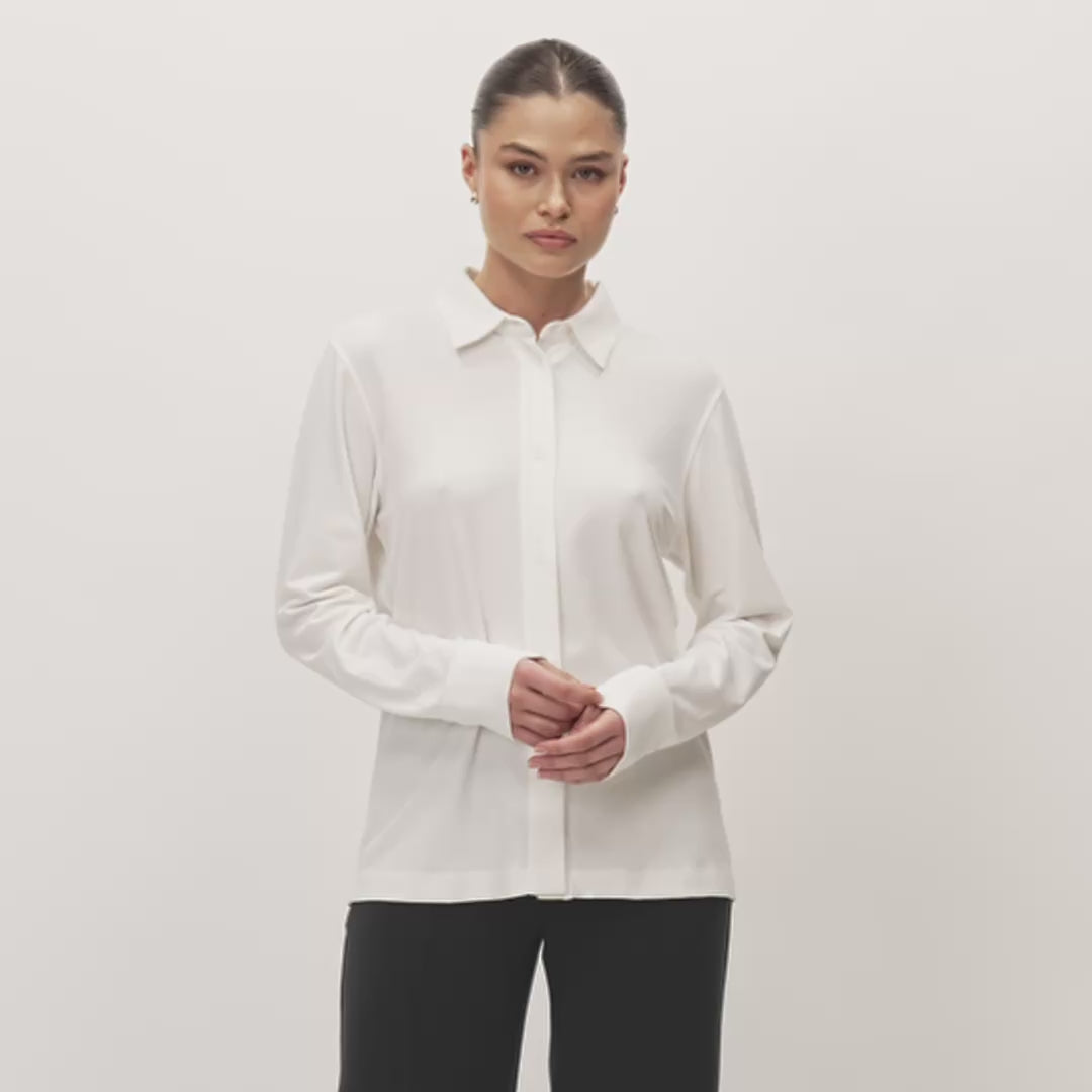 A modern take on the classic button-down. Made from a smooth, soft and breathable LENZING™ Modal jersey with added stretch, this shirt drapes softly and moves with you. Designed with a relaxed fit, traditional collar, and buttoned sleeve vents, this shirt is smart enough to wear out and soft enough to wear in.